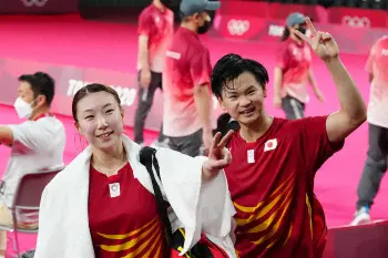 バド混合銅・渡辺 東野への頭ぽんぽん抱擁に照れ笑い「だいぶ熱い抱擁してるな」