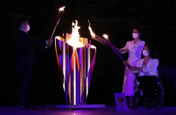 東京パラの集火式開催 聖火リレーアンバサダーのサンド富澤「かじっていいですか?」