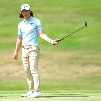 最終ラウンド、2番でショットを放つ渋野(R&A提供)