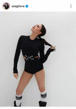 ザギトワは赤い悪魔と天使の輪がついた顔文字とともに、ウエスト部分が空いた黒い変形レオタードを着て、ハイソックス、ブーツを履いた姿を投稿。スタイルの良さが際立つショットとなった。