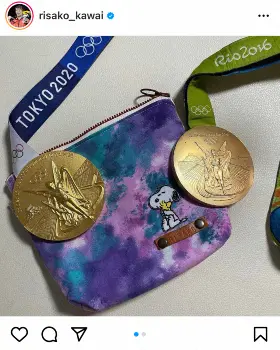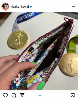 「メダルを収納できるポーチを、瑛絵のお母さんに作ってもらいました!リオのメダルも一緒にしまえるように、仕切りつきでしかも名前入り。ありがとうございます。嬉しい~~!!」とつづり、「RISAKO」と名前の入った仕切り付きの手作りポーチの写真を投稿。ポーチの横にはリオ五輪と東京五輪で獲得したメダルが並べられている。
