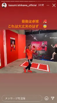 「最後は卓球!これは大丈夫なはず」と“ラリー対決”を体験する動画を投稿。結果は「2位でした」と泣き笑いの絵文字を入れ、「ボール速かった~」と苦笑。展示コーナーには、12年ロンドン五輪卓球女子団体銀メダリストの平野早矢香さん(36)と石川の2ショット写真にメッセージが書かれたものもあり、「平野さん、メッセージありがとうございます」と満面の笑み。最後は自身を含め、東京五輪で輝く選手たちの写真の前で「9/8まで開催されています 皆さんもぜひ」としっかりとアピールして締めくくった。