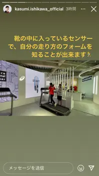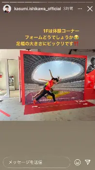 石川は12枚の写真や動画とともにストーリーを連続で更新。まずは「ASICS EXPERIENCE TOKYOにお邪魔しました」とエントランス満面の笑み。館内では、さまざまなアトラクションを体験したようで、まずは「歩行年齢測定をしました!」と歩行分析システムを体験する動画をアップ。「35歳でした」とまさかの結果にショックを受ける写真も公開した。