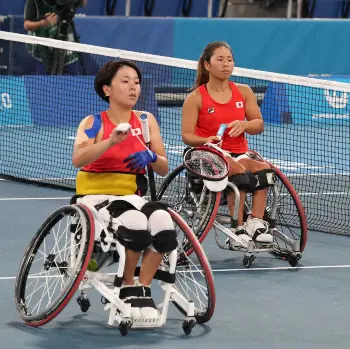東京パラリンピック第9日 車いすテニス・女子ダブルス準決勝   デフロート/ファンクート(オランダ) 6―4 6―2 上地結衣(三井住友銀行)/大谷桃子(かんぽ生命) ( 2021年9月1日    有明テニスの森公園 )