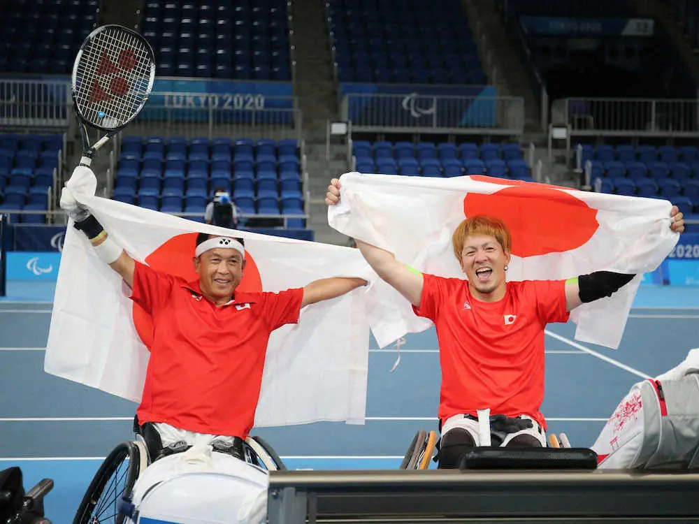 東京パラリンピック第9日 車いすテニス混合上下肢ダブルス3位決定戦 〇諸石光照、菅野浩二 7-5、3-6、7-5 コトリル、ラプソーン● ( 2021年9月1日 有明テニスの森公園 )
