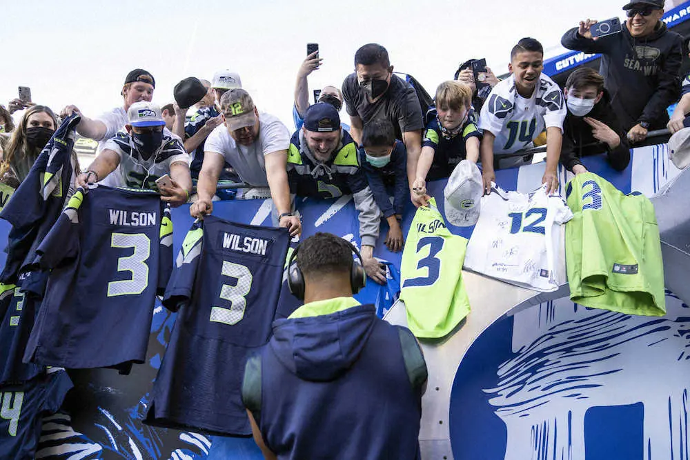 シーホークスのQBウィルソンにサインを求める地元ファン(AP)