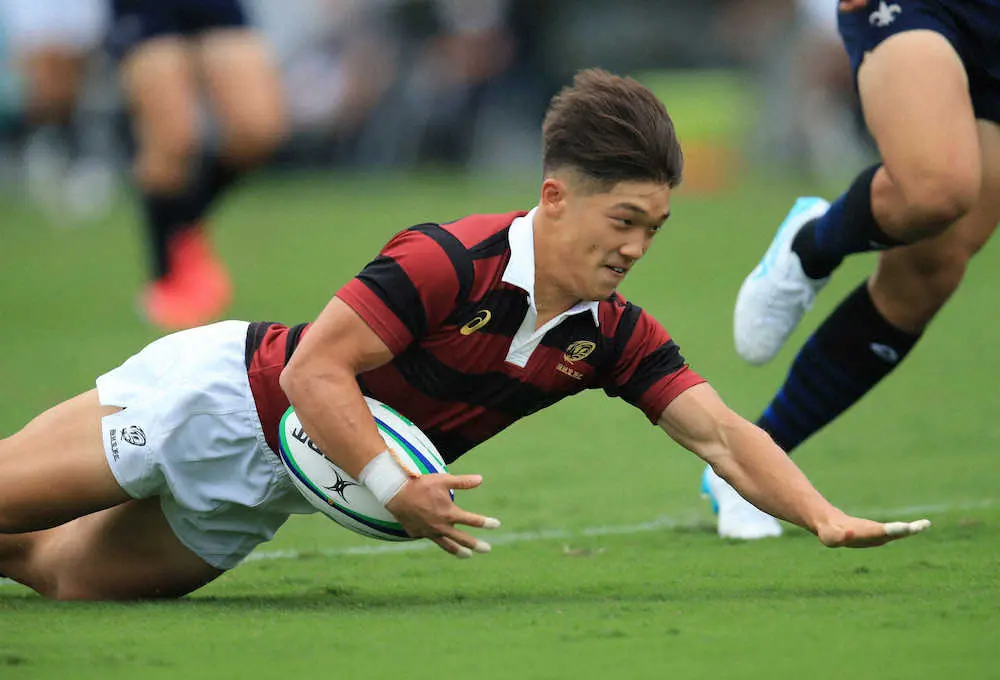 そのファーストトライを挙げたのが3人先発した1年生の1人、SH宮尾昌典だ。前半2分、敵陣で抜け出したWTB槙瑛人(3年)を内側からサポート。残り20メートルでパスをもらうと、インゴール中央に飛び込んだ。同じく1年のNo・8佐藤健次は、負けじと2トライをマーク。もう1人の1年生、右プロップの亀山昇太郎は120キロの巨体を生かしてスクラムなどセットプレーで力を発揮した。
