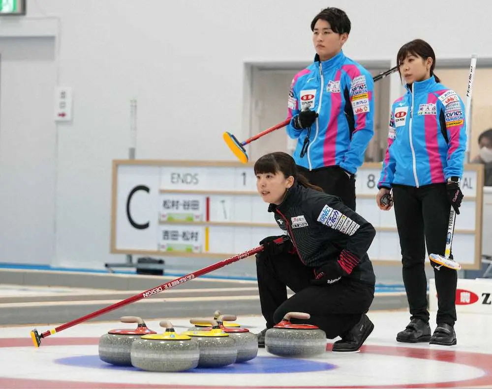 “松村兄妹対決”は、妹の千秋に軍配が上がった。1試合目で竹田夫妻を下した約2時間後、2月の日本選手権決勝では2―10で敗れた兄・雄太と吉田のペアと再戦。不利な先攻の第2、3エンドにともに3点スチールして8―0とすると、第6エンド終了で相手をギブアップに追い込んだ。