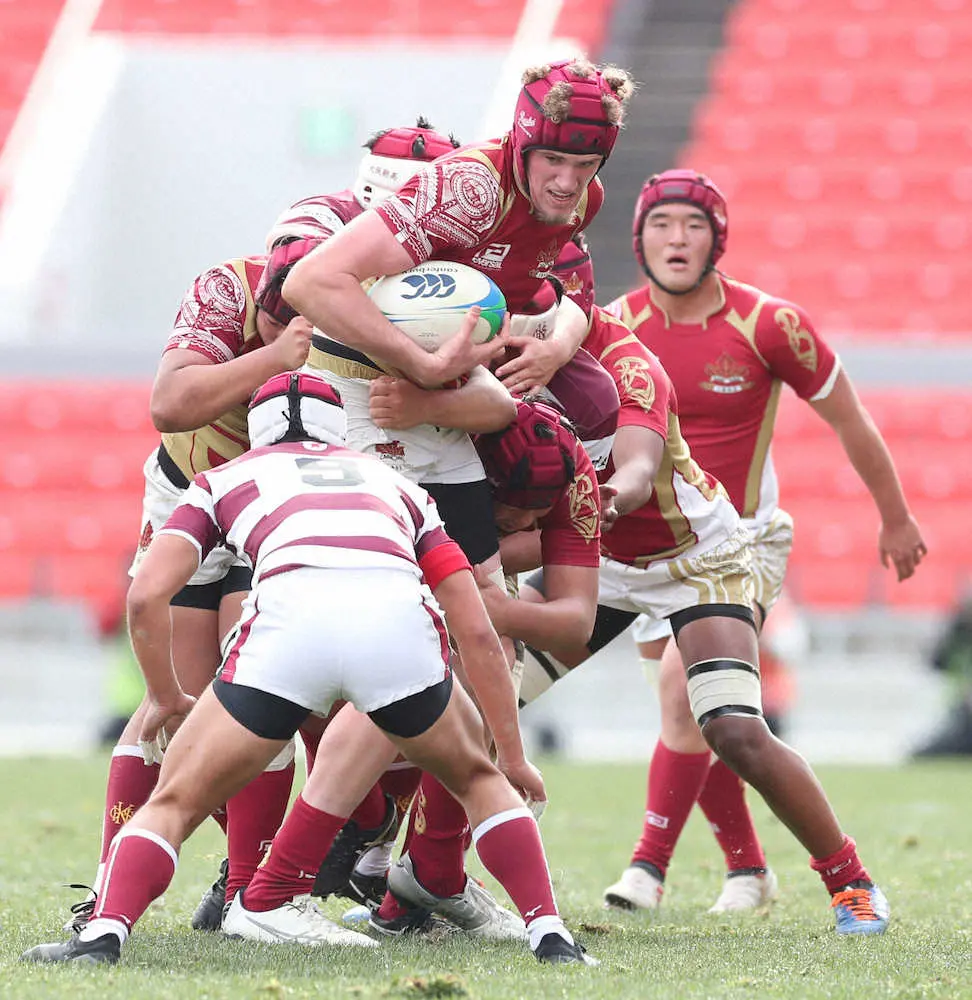 スケールの大きさは折り紙付きだ。昨年の花園出場時は公称「2メートル1、118キロ」だったが、この日発表されたサイズは「2メートル2、122キロ」と現在も成長中。生まれ育った王国ニュージーランドでラグビーを始め、父・グラント氏のNEC(現NECグリーンロケッツ東葛)コーチ就任に伴い中学2年で来日。以後は日本で楕円(だえん)球を追い掛け、大学進学という既定路線には乗らずに憧れのリーチが所属する東芝入りを決めた。