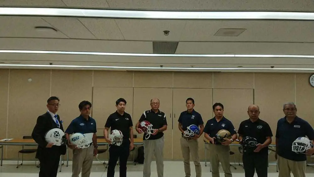 10月2日に開幕する関西学生アメリカンフットボール1部リーグの記者発表会見が28日、大阪市内であり、1部8大学の監督、コーチが意気込みを口にした。