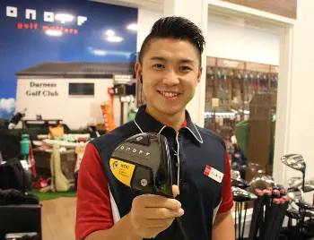 「ONOFF KURO」1Wを手にする二木ゴルフ田園調布店の村上颯一郎さん