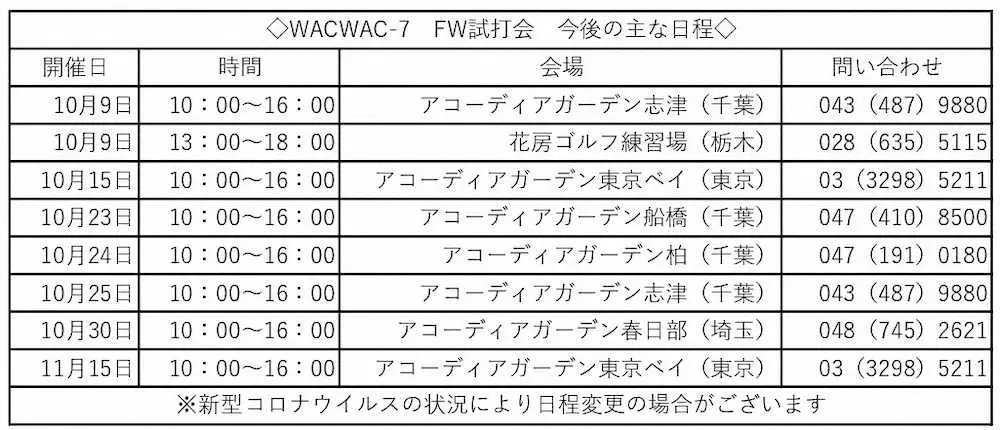 ロフトバリエーションを豊富にそろえた「WACWACー7 FW」 Photo by 提供写真 ゴルフ界に「飛びのワクチン」!高弾道で飛ばせるFW用ヘッド ギャラリーで見る この記事のフォト 2021年10月08日の画像一覧 もっと見る 2021年10月08日の画像をもっと見る