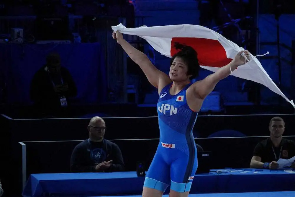 19年大会で銅メダルを獲得している古市は、悲願の頂点に日の丸を掲げてマットを1周し「(ウイニングランは)先輩方がやっているのを見て自分もやりたいと思っていたので、最高でした」と笑みを浮かべた。初の決勝は3―0のリードを守り切り「いつも通り相手の動きが見えて周りの声も聞こえていた。気持ちで勝つことができた」と納得の表情。「72キロで優勝してから五輪階級に挑戦したい」と語っていた24歳は、有言実行で世界一の称号を手にし「パリに向けて一歩ずつ頑張っていきたい」と力を込めた。