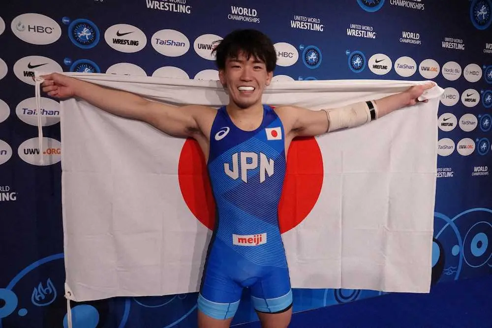 これまでグレコの日本最年少世界王者の記録を保持していたのは、日体大の先輩で東京五輪銀メダルの文田。フリースタイルを合わせても歴代3番目の若さで世界の頂点に立ち、「(文田は)ずっと格好良いと思っていたので、僕もそれに少しは近付けたと思うとうれしい」と声を弾ませた。