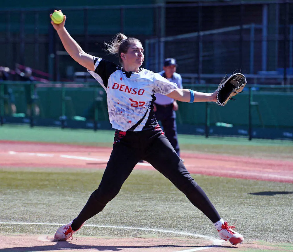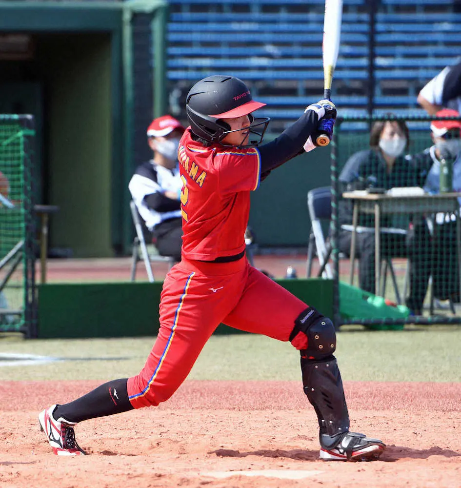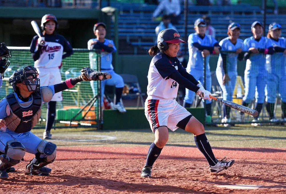 <デンソー・太陽誘電>4回に先制打を放ったデンソー・剱持(日本ソフトボール協会提供)@川口市営球場
