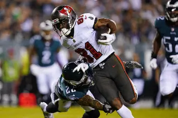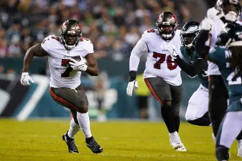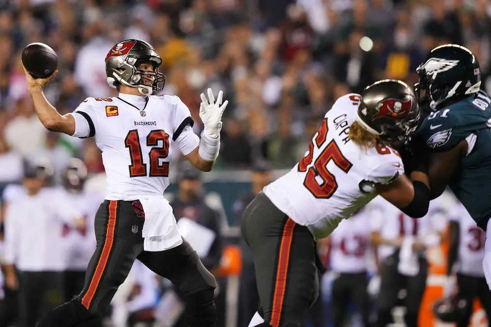 NFLは14日にフィラデルフィア(ペンシルベニア州)で第6週の1試合を行い、昨季のスーパーボウルを制したバッカニアーズが28―22(前半21―7)で地元のイーグルスを下して4勝1敗。スーパーボウルでMVPとなったQBトム・ブレイディー(44)が42回中34回のパスを通して297ヤードと2TDをマークし、チームは3連勝を飾った。