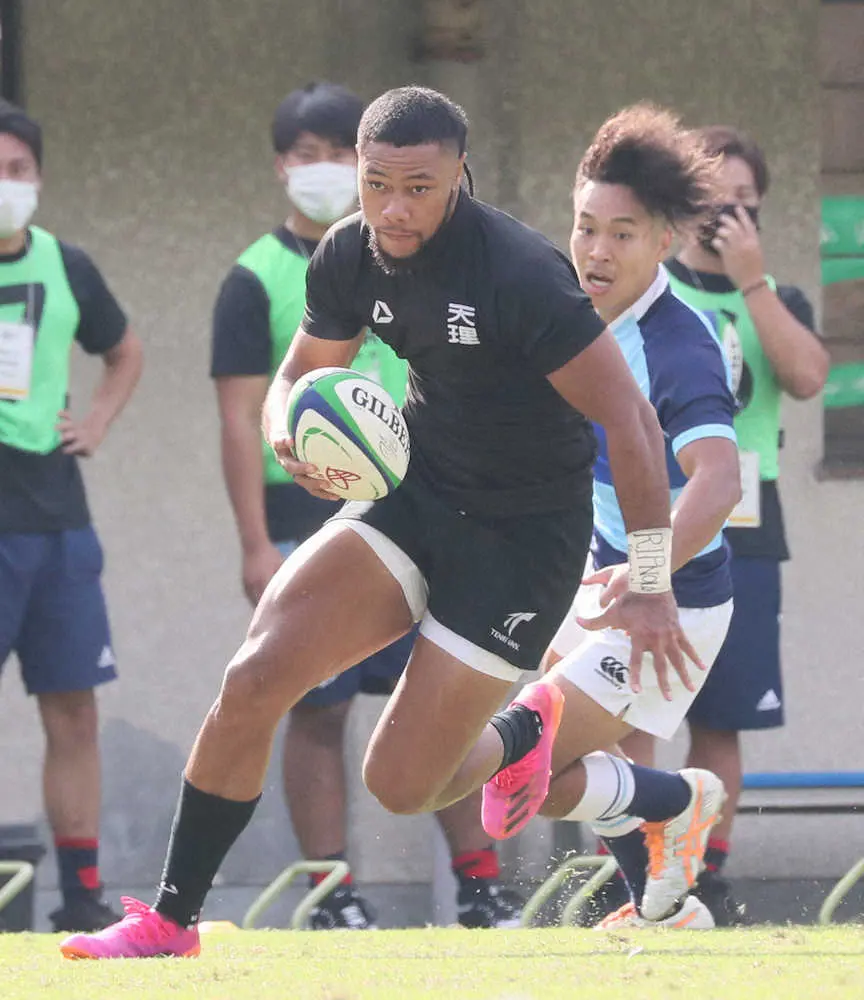 やっとの思いで挙げた初得点は、前半39分。WTBトゥイアキが、SO筒口のキックパスを受けてフィニッシュした。留学生のトゥイアキはこの日、スピードあるランで2トライ。ディフェンスラインを何度も切り裂き、勝利に貢献した。