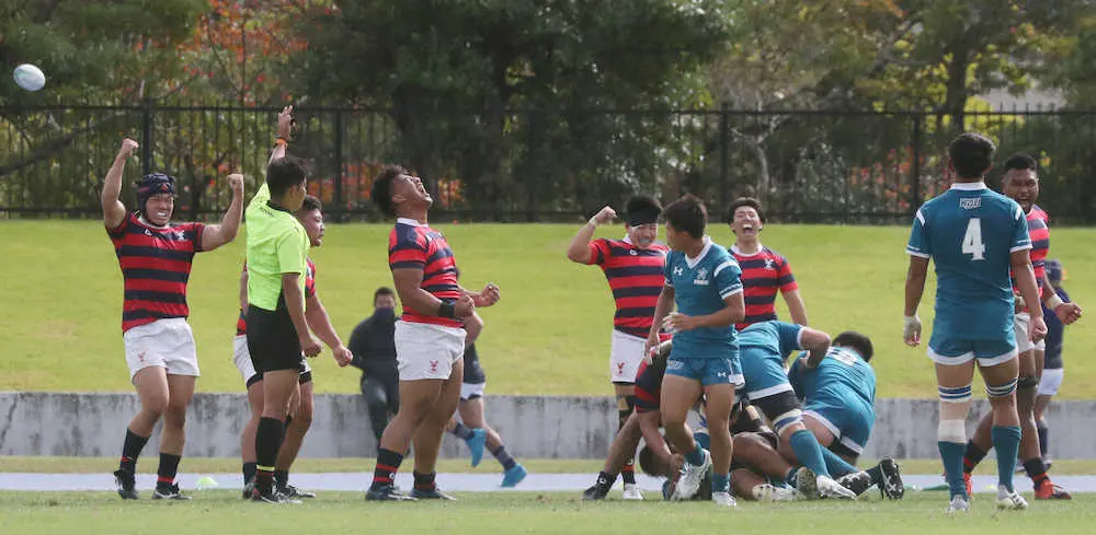 京産大の作戦勝ちだ。10―5で迎えた強い風下の後半、12分と24分にスクラムで反則を奪い、PGで小刻みに3点を加えた。伝統のラインアウトからのモール攻撃は、この日は選択肢の最上位ではなかった。2PGで最大11点差に広げたことが効いて、天理大と同大を破った近大を、4点差で振り切った。