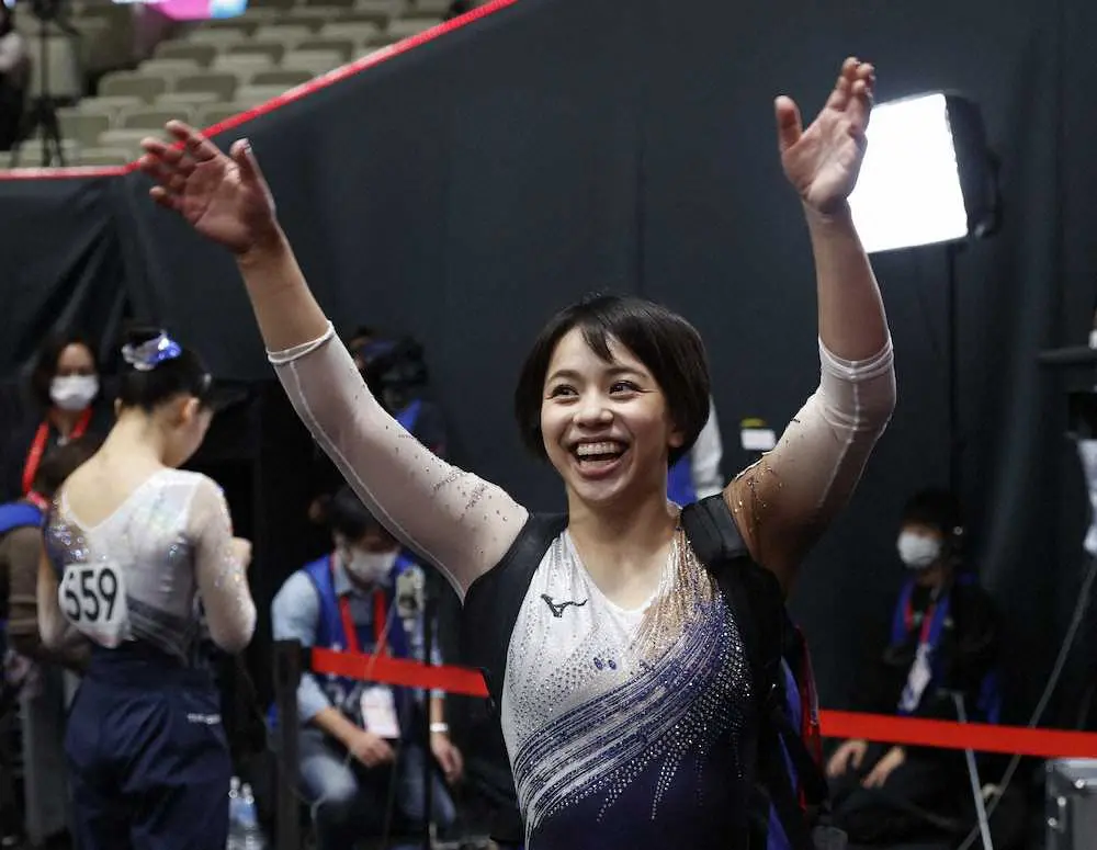 東京五輪で銅メダルを獲得した床運動は、14・166点で全10班中、この日行われた7班終了時点で暫定トップ。無観客だった五輪とは違って有観客での開催で、「お客さんがいることの幸せを感じた。すごく楽しかった」と振り返った。