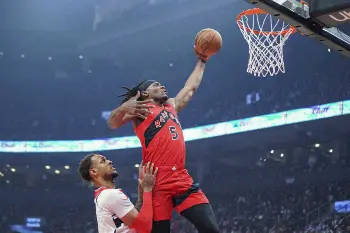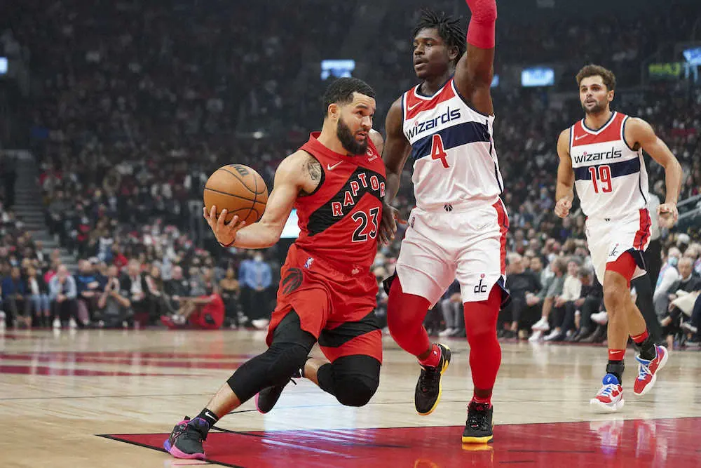 ラプターズはホームでの今季初戦で苦杯。左足ふくらはぎを痛めている渡辺雄太(27)は欠場した。昨季21・4得点をマークした主力フォワードのパスカル・シアカム(27)も肩の故障からまだ復帰しておらず、カイル・ラウリー(35)がヒートに移籍したためにチームの“看板ガード”となったフレッド・バンブリート(27)は12得点どまり。3点シュートの成功は9本中1本だった。