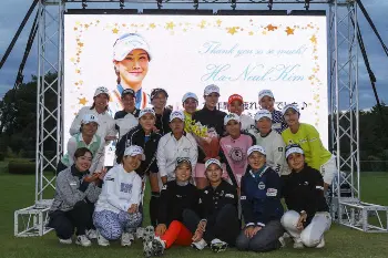 アテスト終了後には引退セレモニーが待っていた。ジュニア時代から切磋琢磨(せっさたくま)してきた韓国の同級生のイ・ボミ、申ジエ、ペ・ヒギョンら、日本からも上田桃子、有村智恵、稲見萌寧、原英莉花らが参加して花束と感謝と慰労の気持ちを込めた言葉とハグを贈った。