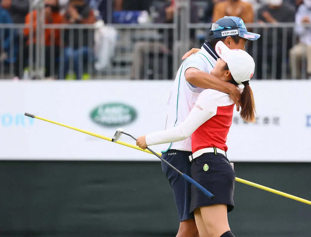 外せばプレーオフ。最終18番で重圧のかかる1・5メートルのパーパットを沈めた古江は笑顔でボールを拾い上げ、清水重憲キャディー(47)と抱き合った。「最後の18番は前の組でバーディーが出たのが分かっていたので、パーセーブするのに必死だった。兵庫県で優勝できてうれしい」。両親、知人、地元ファンの前で歓喜の瞬間を迎えた21歳は、感極まって涙を拭った。