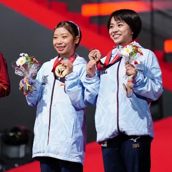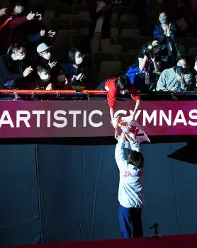 東京五輪の床で、個人では日本女子初の表彰台となる銅メダルを獲得。無観客の夢舞台から有観客の今大会へ歩んだのは自分の演技を見てもらいたかったから。みんなに、そして誰よりも支えてくれた母・英子さんに。表彰式を終えた村上は、感謝を込めて客席の母に花束を渡した。