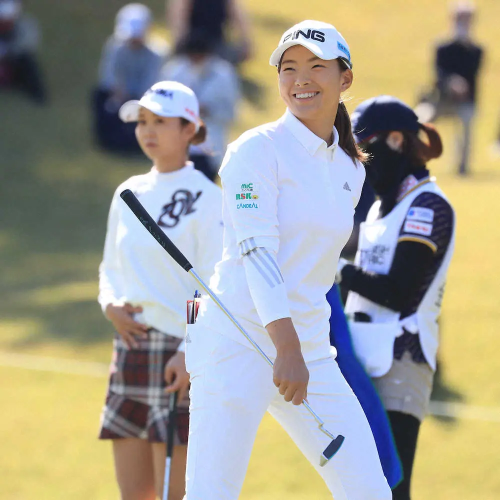 <三菱電機レディース・2日目>16番、笑顔を見せる渋野日向子(撮影・西尾 大助) Photo by スポニチ 渋野日向子が今季2勝目に王手 68で首位タイ浮上 三菱電機レディース ギャラリーで見る この記事のフォト 2021年10月30日の画像一覧 もっと見る 2021年10月30日の画像をもっと見る