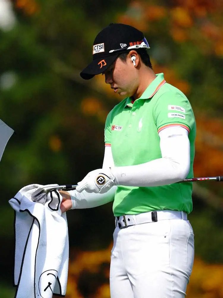 クラブを磨く笹生(撮影・井垣 忠夫)