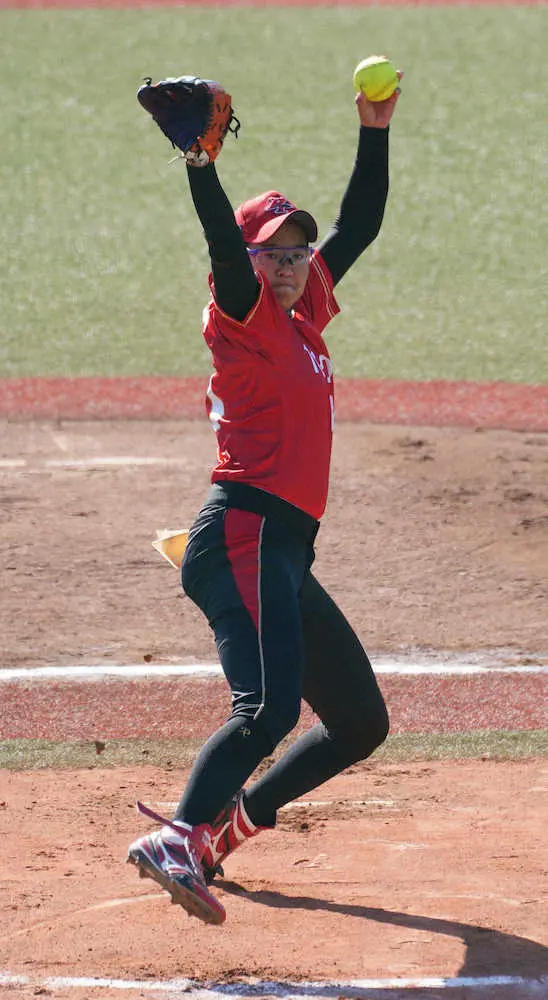 <日本女子ソフトボールリーグ決勝トーナメント3位決定戦 トヨタ自動車・ホンダ>力投するトヨタ自動車先発・後藤(撮影・郡司 修)