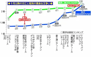 優勝賞金3300万円を獲得し、9月の住友生命レディース東海クラシック終了時に7248万4074円あった賞金ランク1位・稲見との差を396万8474円に詰めた。