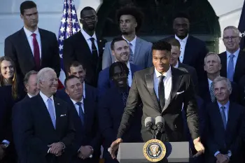 NBA王者が5年ぶりにホワイトハウスを訪問 アデトクンボがバイデン大統領の前でスピーチ