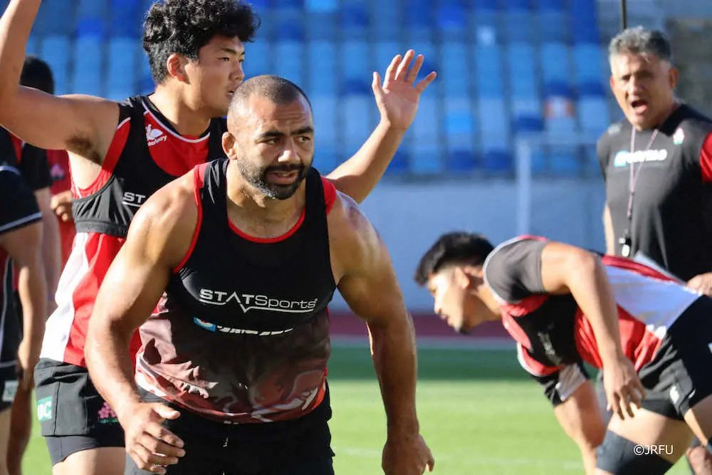 先発はその他にもプロップのクレイグ・ミラーとヴァル・アサエリ愛(ともに埼玉)、SH茂野海人(トヨタ)、代表初キャップとなるCTB中野将伍(東京SG)らが名を連ね、5―60で大敗した6日のアイルランド戦からは10人が変更。注目の2メートル2の長身ロック、19歳のワーナー・ディアンズ(BL東京)もリザーブ入りし、初キャップ獲得に期待が掛かる。ゲーム主将はメンバー外となったピーター・ラブスカフニ主将(東京ベイ)に代わり、CTB中村亮土副将(東京SG)が務める。