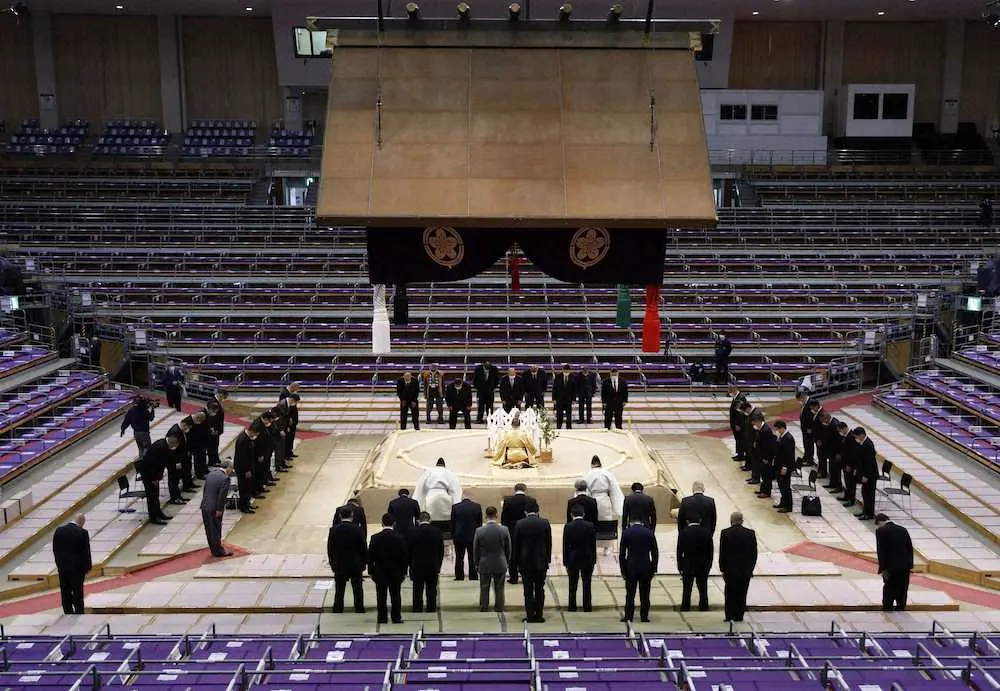 大相撲九州場所は14日、福岡国際センターで初日を迎える。13日は土俵祭りが行われ、八角理事長(元横綱・北勝海)や審判部の親方衆らが15日間の安全を祈願した。