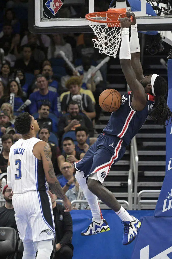 NBA東地区全体で首位に立っているウィザーズは13日、敵地オーランド(フロリダ州)でマジックを104―92(前半50―37)で下して4連勝。同地区全体2位のネッツ(8勝3敗)に0・5ゲーム差をつけた。昨季の12戦終了時の成績は3勝9敗だったが今季は真逆の9勝3敗。開幕からの12試合で9勝を挙げたのは7季ぶりとなった。開幕前までの優勝オッズは“大穴扱い”の150倍前後。しかし八村塁(23)やダビス・バターンズ(29)を欠きながらも、ここまでは快進撃を見せている。