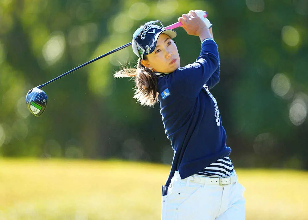 <伊藤園レディース第2日>3番、ティーショットを放つ上田(撮影・西尾 大助)