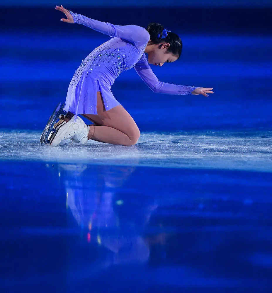 紫の衣装に身を包み、韓国ドラマ「愛の不時着」の『Flower』を演じてダブルアクセル(2回転半)やイナバウアーなどを披露。しっとりと舞った。