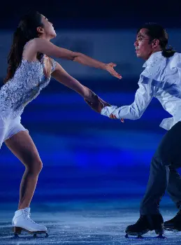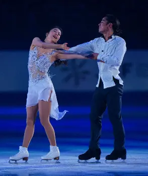 村元は純白ドレス、高橋は長髪を束ね、白シャツ、黒パンツ姿で登場。落ち着いた曲調に合わせた華麗なエッジワークや、高橋が村元を右肩で支えるリフトなどでしっとりした演技で魅了した。“かなだい”の愛称で知られる2人が最後は熱く抱き合った。