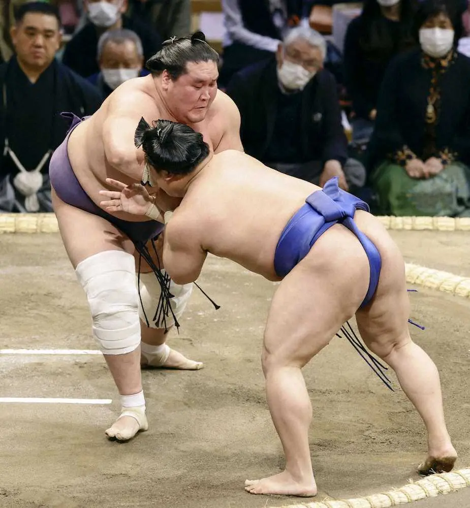 まわしにこだわらなかった取り口について「みんなはまわしを取らせないようにしてくるから、取れなくても圧力をかけていこうと思った」と説明。危ない場面があった2日目の大栄翔戦から立て直し「昨日は昨日。今日は今日で頑張っていけばいい」と話した。