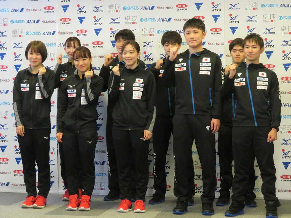 卓球の世界選手権個人戦(23日開幕、米ヒューストン)に出場する日本代表が16日、出発前に成田空港で記者会見した。張本智和(18=木下グループ)は2年ぶりに早田ひな(21=日本生命)とペアを結成し、東京五輪で日本が金メダルを獲得した混合ダブルスに出場予定。張本は「練習はできているので十分メダルは狙える」と“みまじゅん”に続く構えをみせた。