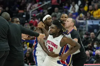 レイカーズのジェームズが退場処分 「ひじ打ち」を受けたピストンズのスチュワートは流血!