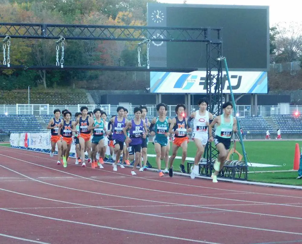 <陸上1万メートルMARCH対抗戦>集団で走る各大学のランナーたち