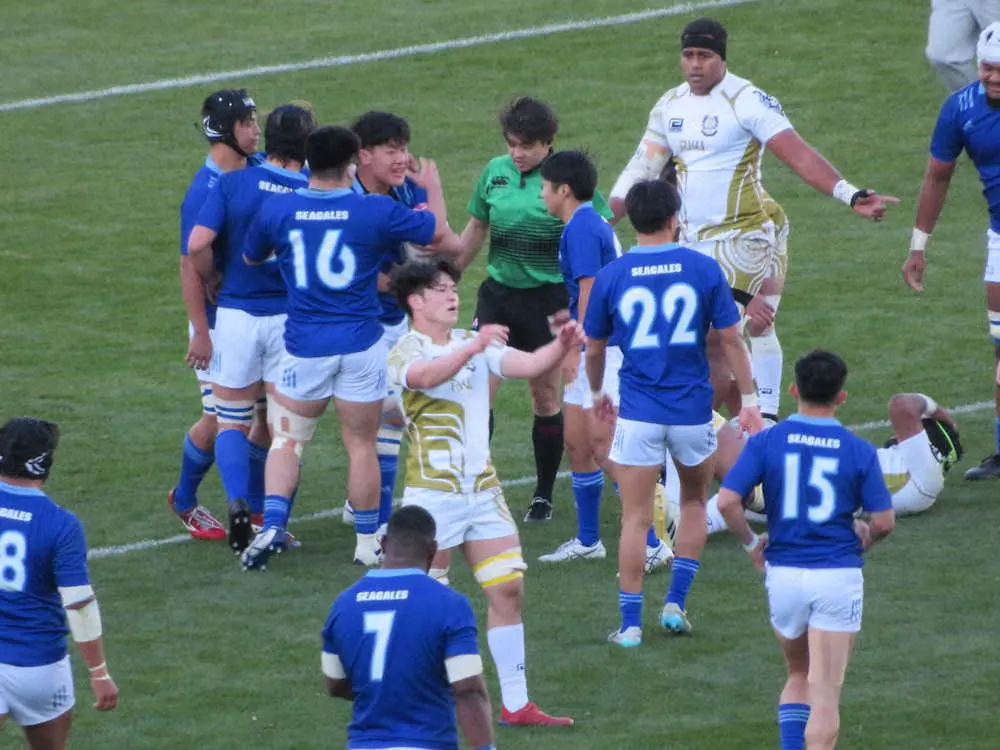 東海大は前半4分にラインアウトモールでフッカー本橋(4年)が先制トライ。その後もセットプレーや接点の圧力で相手を上回り、前半だけで6トライを積み上げて勝負を決めた。後半27分には相手ゴール前からスクラムトライも“披露”。昨年度は2位ながら、今年度はシーズンを通じて調子が上がらなかった流通経大を圧倒した。