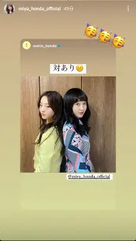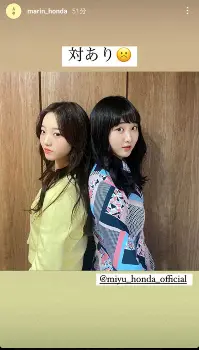 真凜と望結は背中合わせに立った写真を投稿。望結の方が若干高いため“対戦ありがとうございました”を意味する「対あり」に、口をへの字にした顔文字を付けていた。また、望結も即座にそれを引用。こちらは喜ぶ顔のマークを並べていた。