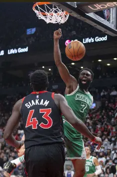 ラプターズでは今季20・1得点を記録していたOG・アヌノビー(24)が臀部の故障で6試合連続で欠場。17・3得点のゲイリー・トレントJR(22)もふくらはぎを痛めてセルティクス戦の登録から外れた。さらにカイル・ラウリー(35)とのトレードでプレシャス・アチューワ(22)とともにヒートから移籍してきたスロベニア出身のガード、ゴラン・ドラギッチ(35)は「個人的事情」でチームを離脱。この日はフレッド・バンブリート(27)が27得点、ドラフト全体4番目に指名されたスコッティー・バーンズ(20)が21得点、パスカル・シアカム(27)は18得点を稼いだものの、後半でセルティクスに振り切られた。