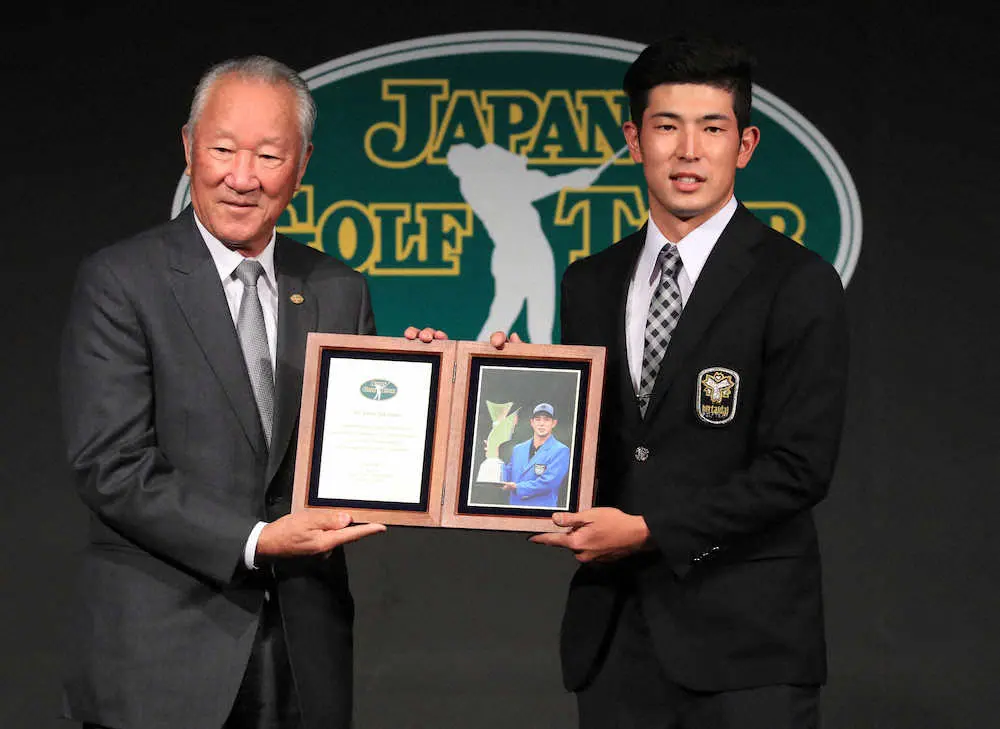 男子ゴルフツアーの表彰式が6日、都内のホテルで行われた。