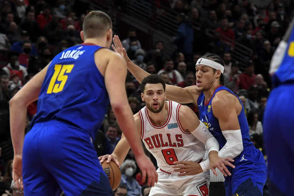 NBAは6日に各地で10試合を行い、今季リーグ4位の26・4得点を挙げていたデマー・デローザン(32)ら3選手が新型コロナウイルス感染防止規定(プロトコル)の対象となって戦列を離れたブルズは、地元シカゴ(イリノイ州)でナゲッツと対戦。東京五輪の米国代表だったザック・ラビーン(26)が32得点を稼ぎ、109―97(前半46―49)で勝利を収めて4連勝を飾った。