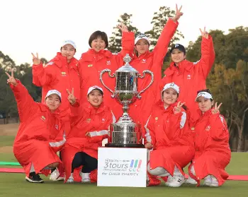 ▽競技方法 各団体7人が出場し、6人がプレー。前後半で選手の入れ替えができる。2人一組でペアになり各団体1ペア合計3ペアが同組で回る。前半は自分のボールでプレーし良い方のスコアを採用するフォアボール方式。後半は1つのボールを交互に打つフォアサム方式。前後半とも合計ストロークで争い、同組内の順位に応じてポイントを配分。前半は1位4ポイント、2位2ポイント、3位0ポイント。後半は1位6ポイント、2位4ポイント、3位2ポイント。前後半の合計ポイントで最終順位を決定。