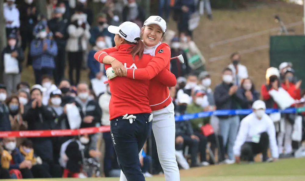 女子を連覇に導き「少しでも貢献できて良かった」。後半は練習拠点が同じシニアの篠崎、同門で男子の木下稜と同組。しかも師事する奥嶋誠昭コーチが木下稜のキャディーを務めた。縁の深い顔合わせに「ぶっちぎりで勝ちたいと思っていた」と強い気持ちで臨んでいた。東京五輪で銀メダルを獲得し、年間8勝を挙げ賞金女王に輝いた21年の主役は最後までその座を譲らなかった。「予選落ちの回数を減らしたい」と既に22年を見据えている。