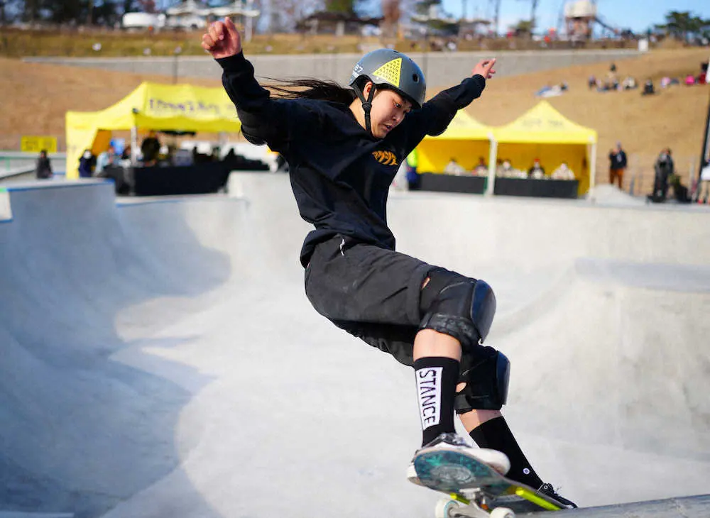小3から始めたスケボーの競技歴は約4年。愛好家の母に負けたくない一心で週6日は練習に励み、頭角を現した。今大会で不在だった五輪代表勢は「次元が違う」と謙遜も、「グラインドやエアの高さを上げたい」と3年後のパリ五輪へ進化を誓った。